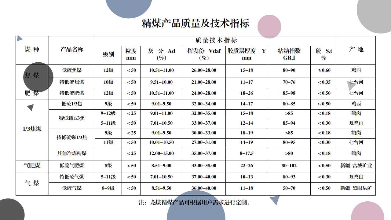 龍煤集團主營產品——精煤系列產品